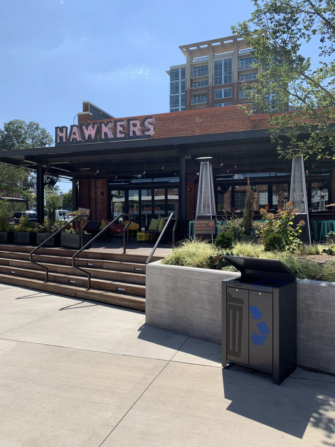The Lexicon waste receptacle was developed as a unit that offers various capacity and functional configurations to help meet site needs. The rain sheet is most functional for outdoor applications, while the open top unit works great for indoor application and allows for access from both sides of the unit. The options allow for a cohesive site aesthetic. The large bold graphics serve as a highly visual and easy to interpret indicator of which type of recycling or waste goes into which stream.